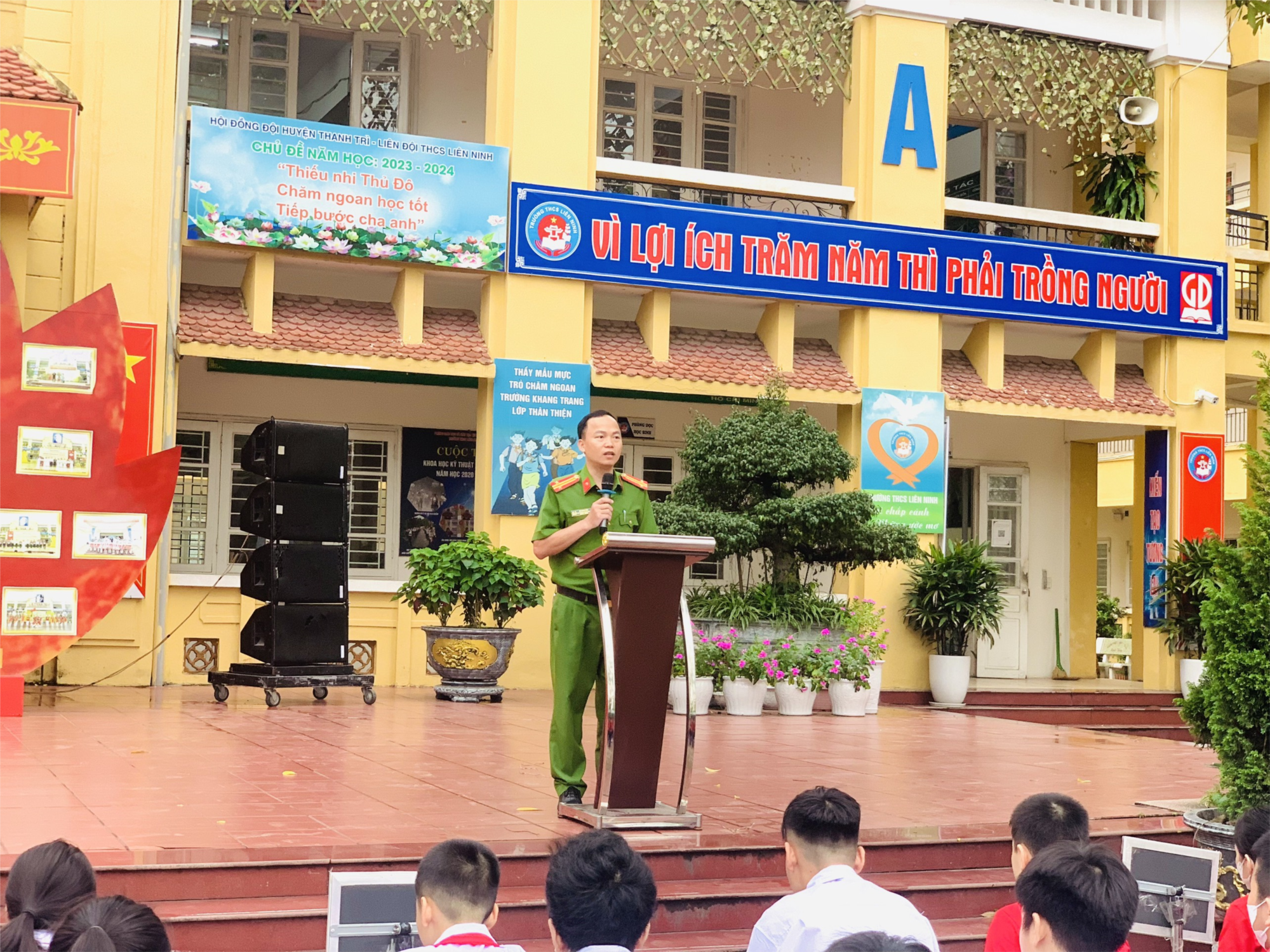Tham dự buổi tuyên truyền có đồng chí Nguyễn Thị Bình Minh – Phó trưởng phòng LĐTB&XH huyện Thanh Trì; đồng chí Phan Tuấn Thành – Cán bộ đội Cảnh sát hình sự, Công an huyện Thanh Trì, đồng chí Vũ Đình Hòa - Phó Trưởng Công an xã Liên Ninh. Về phía nhà trường có cô giáo Nguyễn Thị Minh Thảo – Bí thư Chi bộ, Hiệu trưởng nhà trường, cô giáo Trần Thị Phương Tình – Chi ủy viên, Phó hiệu trưởng nhà trường, cô giáo Phạm Thị Thanh Huyền – Chủ tịch Công đoàn, Phó hiệu trưởng nhà trường cùng toàn thể CBGVNV và học sinh toàn trường.