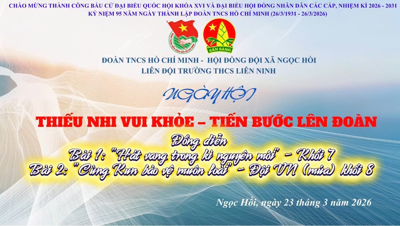Hòa chung không khí sôi nổi chào mừng kỷ niệm 95 năm ngày thành lập Đoàn TNCS Hồ Chí Minh (26/31931 - 26/3/2026), các em học sinh khối 7, 8 trường THCS Liên Ninh đã mang đến 2 màn đồng diễn cực kỳ ấn tượng trên nền nhạc hành khúc: