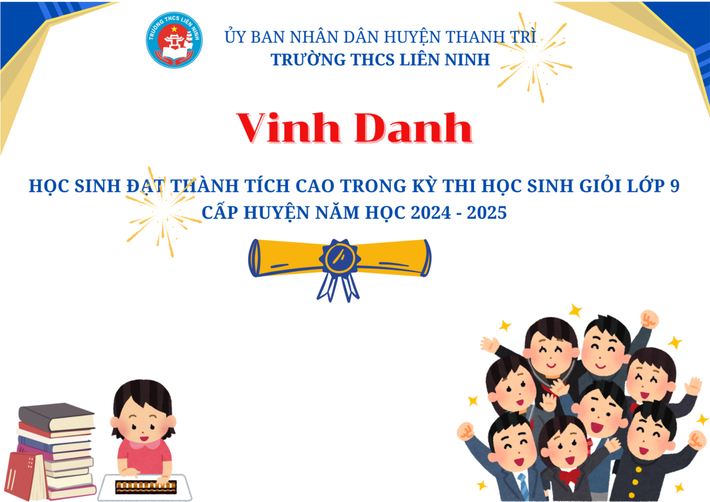 Tại kì thi học sinh giỏi lớp 9 huyện Thanh Trì năm học 2024 - 2025, trường THCS Liên Ninh có 10 đội tuyển tham dự. Kết quả, tất cả 10 đội tuyển ra quân đều đạt giải với 01 giải Nhất, 07 giải Nhì, 13 giải Ba và 26 giải Khuyến khích, trong đó có 13 bạn được lọt vào vòng thi học sinh giỏi cấp Thành phố. Thành tích này đã mang về niềm vui, hạnh phúc, tự hào cho thầy và trò nhà trường, góp phần tô thắm thêm vườn hoa thành tích của trường THCS Liên Ninh.