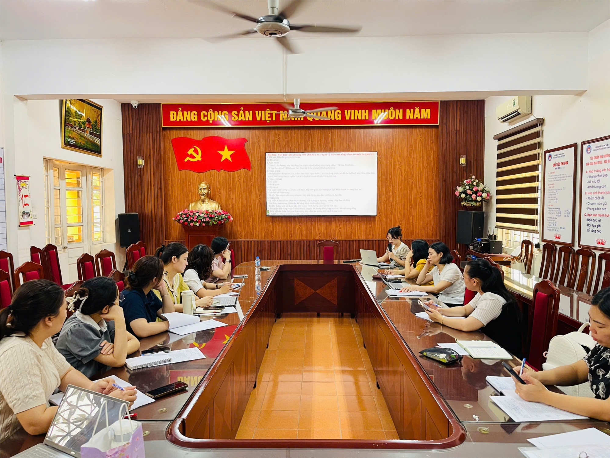 Sáng ngày 10/04/2026, tại Phòng Hội đồng sư phạm, Tổ Ngữ văn – GDCD đã tổ chức buổi trao đổi chuyên môn với sự tham gia của Ban Giám hiệu và các giáo viên trong tổ. Chuyên đề do cô Trần Thị Thu Hương thực hiện với nội dung “Trao đổi các dạng bài nghị luận xã hội”, tập trung vào định hướng ôn thi vào lớp 10.