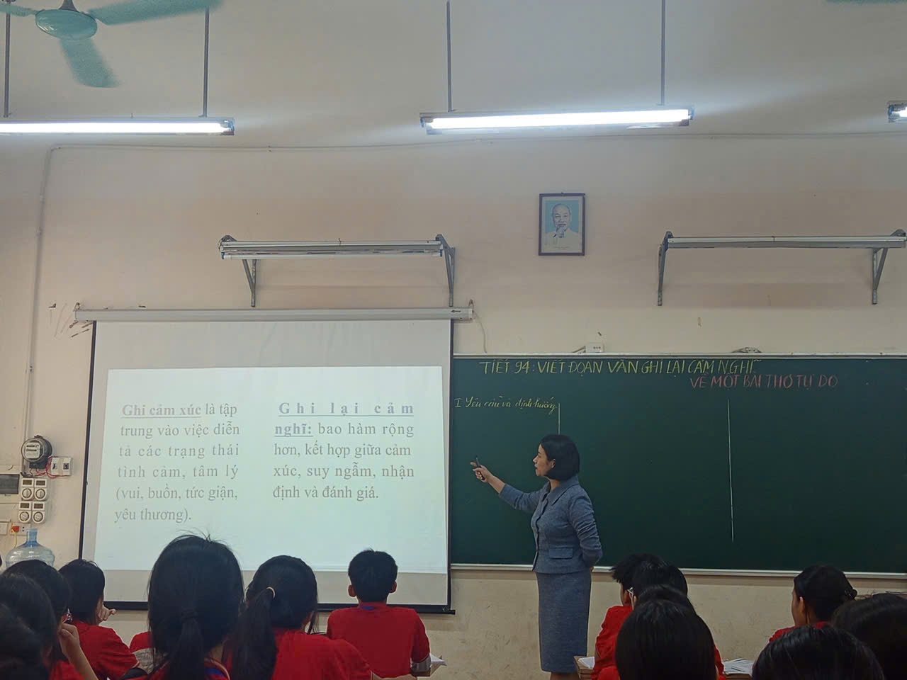 Ở phần hình thành kiến thức, học sinh được phát vấn để phân biệt “ghi cảm xúc” và “ghi cảm nghĩ”, nhắc lại đặc điểm thể thơ và yêu cầu của kiểu bài. Thông qua phân tích văn bản mẫu về bài thơ Lá đỏ, các em nhận diện rõ bố cục ba phần, cách đưa dẫn chứng, sử dụng lí lẽ và liên kết đoạn văn.