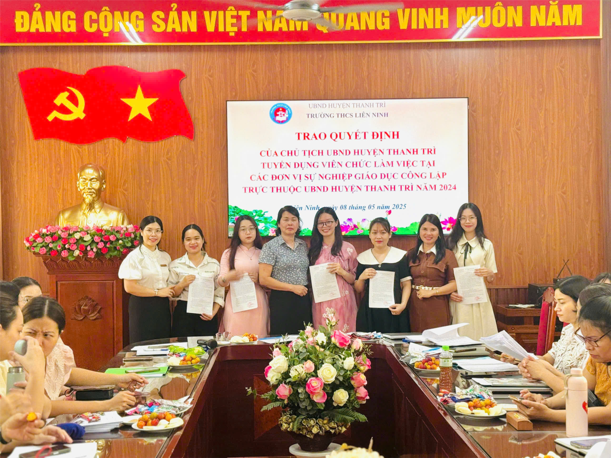 Tại buổi gặp mặt, đồng chí Phạm Thị Bích Hạnh – Bí thư Chi bộ, Hiệu trưởng nhà trường đã trao quyết định tuyển dụng cho 05 viên chức trúng tuyển thuộc các môn Toán, Ngữ văn, Lịch sử - Địa lý. Đồng chí giao nhiệm vụ cho các tổ chuyên môn phân công nhiệm vụ cho các viên chức mới trúng tuyển theo đúng vị trí việc làm. Các đồng chí giáo viên trong nhà trường giúp đỡ các viên chức mới phát huy năng lực, sở trường, nhanh chóng tiếp cận công việc giảng dạy, góp phần cùng đơn vị hoàn thành nhiệm vụ năm học 2024-2025. Đồng thời, đồng chí Hạnh cũng bày tỏ mong muốn các viên chức được tuyển dụng sẽ luôn đồng lòng, tiếp tục cố gắng nâng cao trình độ nghiệp vụ, nêu cao tinh thần trách nhiệm, quyết tâm hoàn thành tốt nhiệm vụ được giao, góp phần đóng góp vào sự phát triển chung của Nhà trường.
