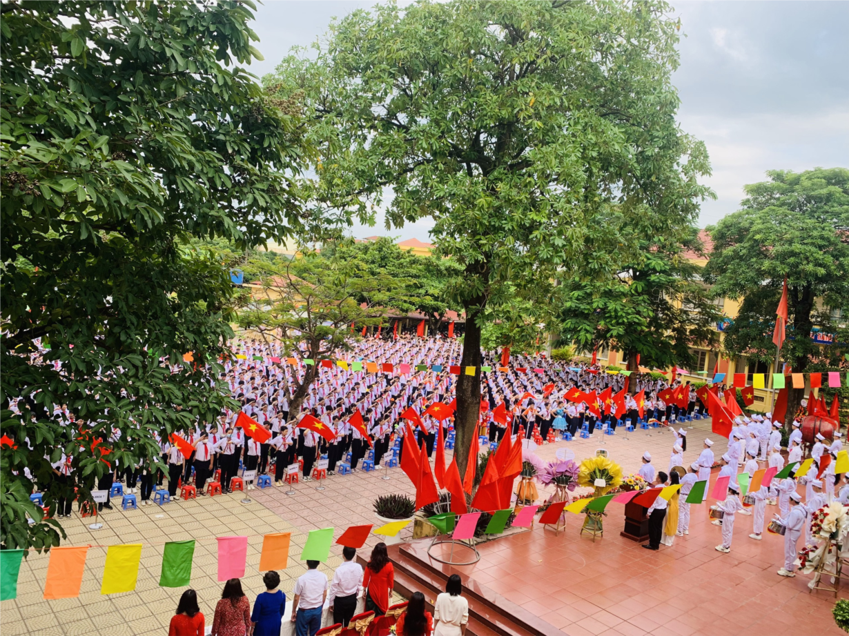 Sân trường ngập sắc cờ hoa
