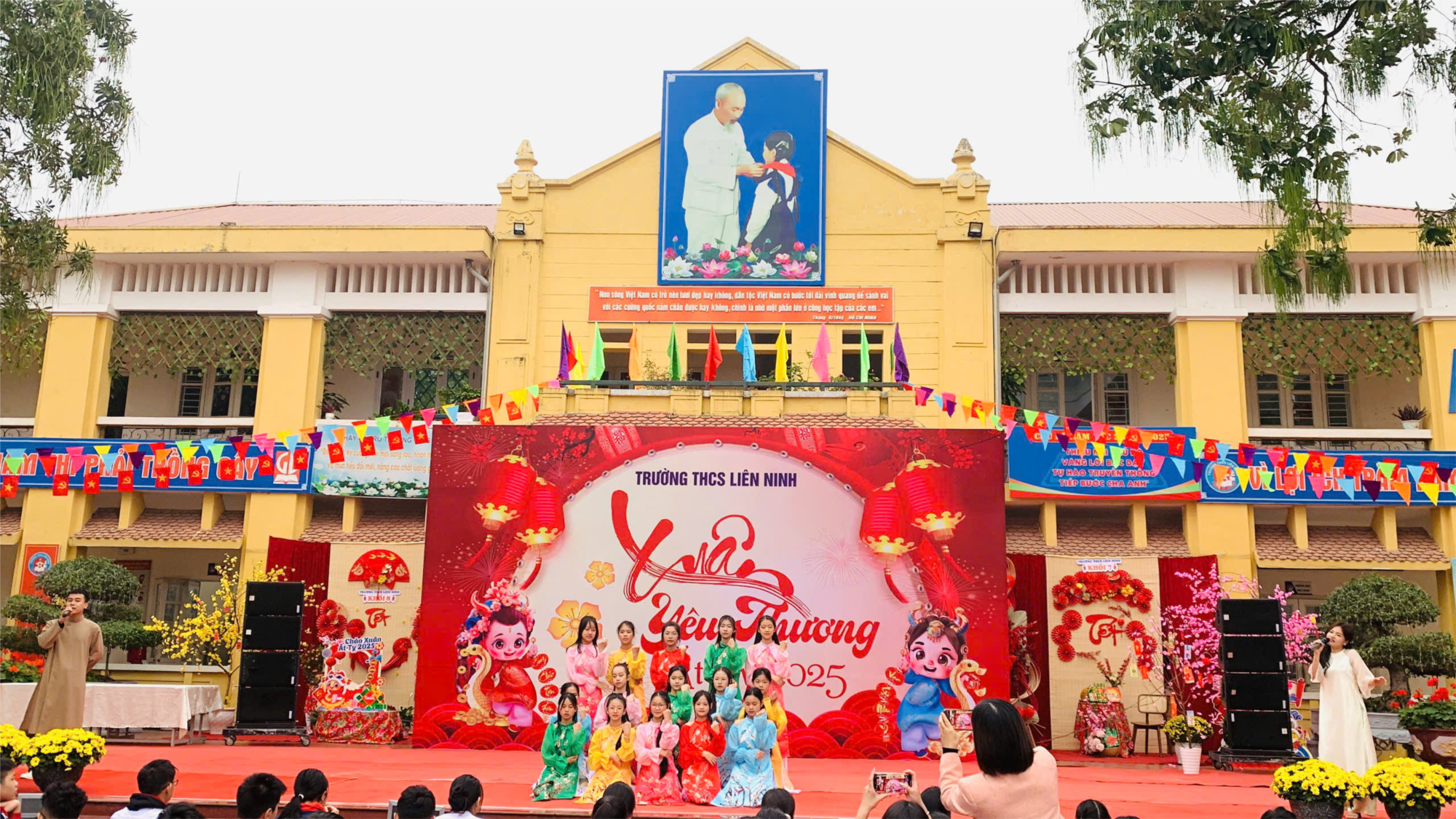 Tất cả những tiếng hò reo cổ vũ từ các trò chơi, những nụ cười e thẹn khi diện những tà áo dài truyền thống tới trường của các bạn học sinh, những mâm cỗ đủ đầy, đậm đà hương vị Tết đến từ các lớp trong không gian trưng bày ngập tràn sắc xuân của các khối, những ca khúc rộn ràng về ngày Tết và cả những cảm xúc ngập tràn tình yêu thương của các thầy cô giáo, các bậc phụ huynh dành cho các bạn sinh có hoàn cảnh khó khăn,… đã tạo nên một ngày hội xuân đầy màu sắc của cảnh vật và tràn đầy tình yêu thương của thầy và trò trường THCS Liên Ninh, sẽ là những hình ảnh đáng nhớ trong tâm trí mỗi bạn học sinh.