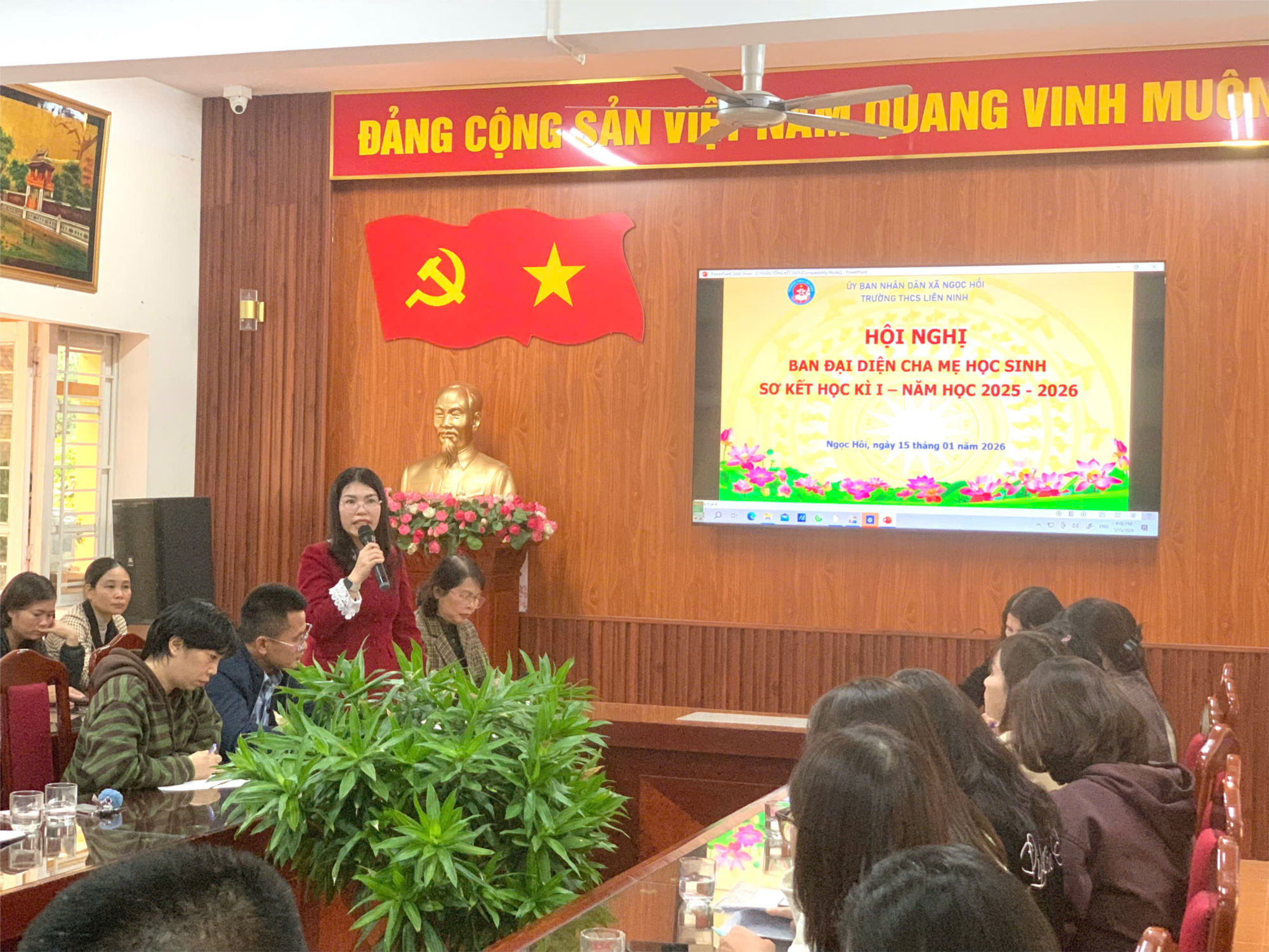 Hội nghị cha mẹ học sinh sơ kết học kì I năm học 2025–2026 của Trường THCS Liên Ninh đã diễn ra thành công tốt đẹp, thể hiện sự đồng thuận, tin tưởng và quyết tâm đồng hành chặt chẽ giữa gia đình và nhà trường vì sự phát triển toàn diện của các em học sinh trong thời gian tới.