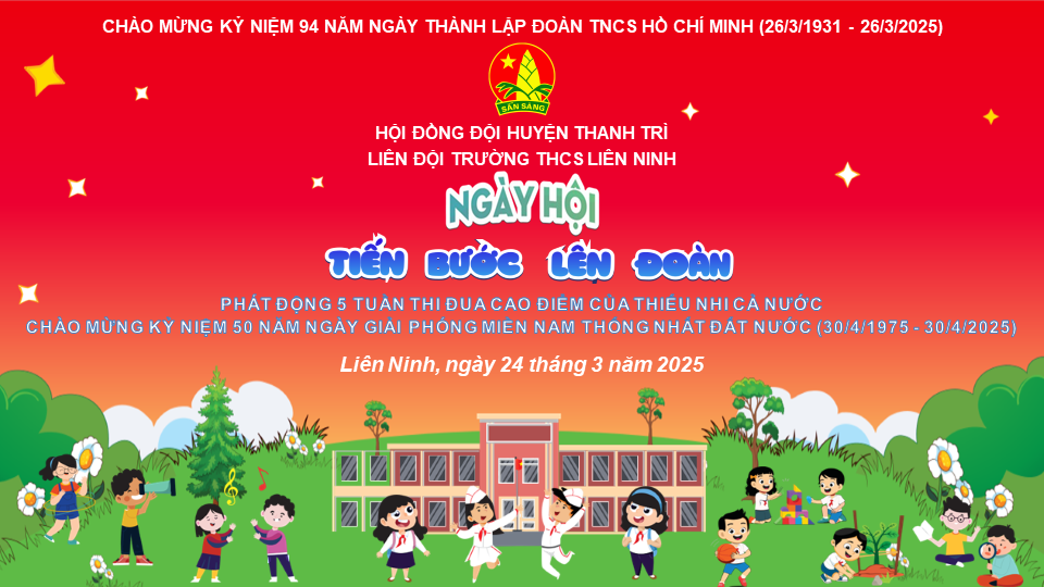 Nằm trong chuỗi các hoạt động chào mừng kỷ niệm 94 năm Ngày thành lập Đoàn TNCS Hồ Chí Minh (26/3/1931-26/3/2025), ngày 22/3/2025, chi Đoàn và Liên đội trường THCS Liên Ninh long trọng tổ chức Ngày hội “Thiếu nhi vui khỏe - Tiến bước lên Đoàn”, đồng thời phát động 05 tuần thi đua cao điểm chào mừng kỷ niệm 50 năm Ngày Giải phóng miền Nam, thống nhất đất nước (30/4/1975 - 30/4/2025).