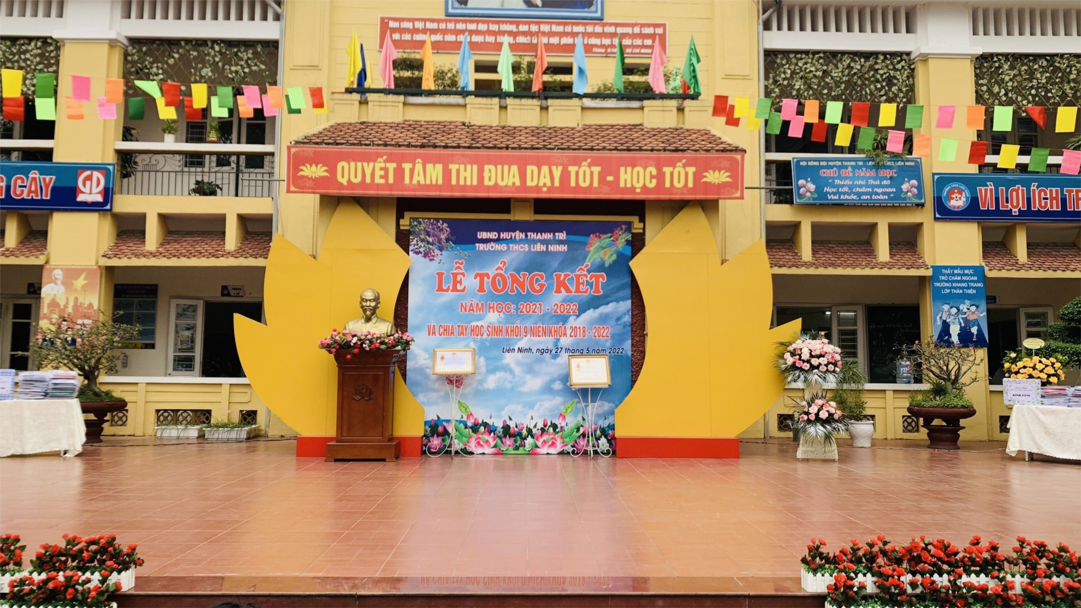Lễ Bế giảng năm học 2021-2022 diễn ra trong không khí trang trọng đã khép lại với nhiều cảm xúc và dư âm tốt đẹp. Một chặng đường mới sẽ lại bắt đầu, thầy và trò trường THCS Liên Ninh quyết tâm hoàn thành mục tiêu đề ra và giành được nhiều thắng lợi mới. Chúc cho tất cả học sinh của trường có một kỳ nghỉ hè vui khỏe, bổ ích, an toàn. Chúc các em học sinh lớp 9 đạt được kết quả cao trong kì thi tuyển sinh vào lớp 10 sắp tới và luôn là niềm tự hào của ông bà, cha mẹ, thầy cô, bạn bè!