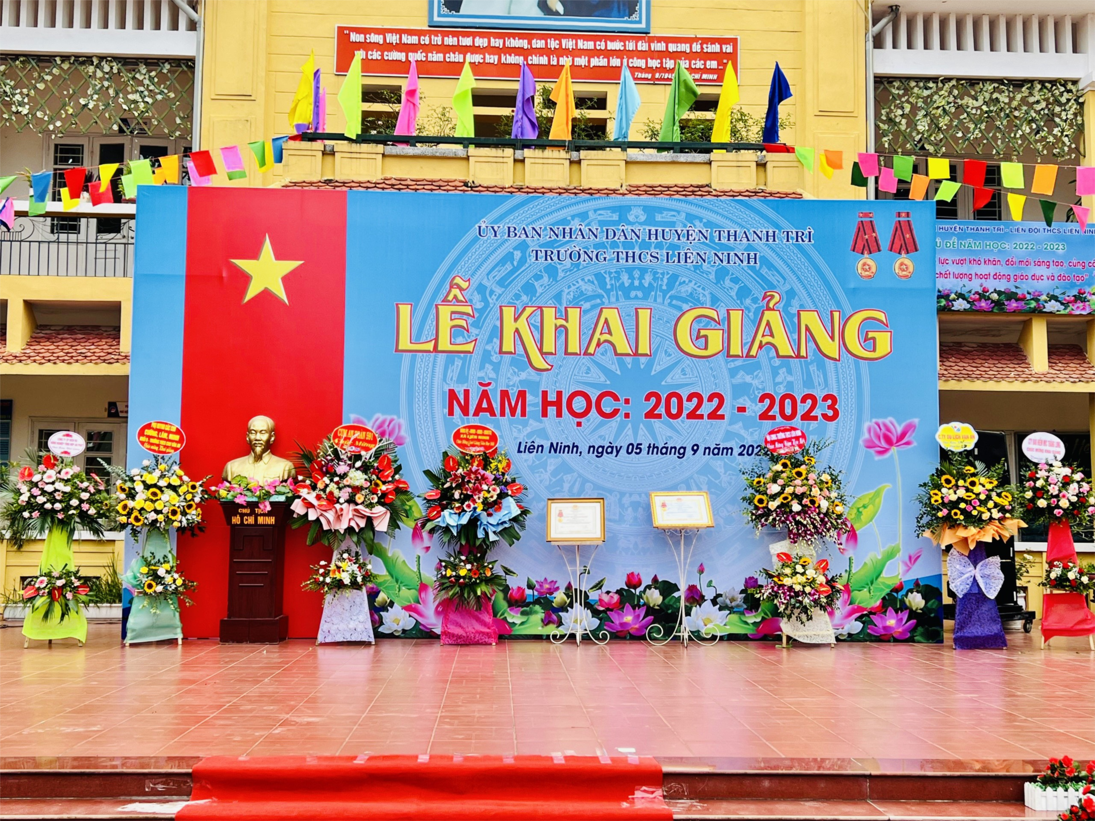 Ngay sau phần nghi lễ chào cờ, nhà trường đã nhận được những lãng hoa tươi thắm thể hiện ự quan tâm sâu sắc, những tình cảm của các cấp lãnh đạo, các cơ quan đơn vị dành cho tập thể CB, GV, NV và hoạt động giáo dục của nhà trường.