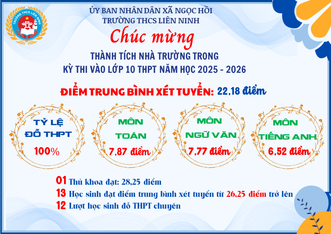 💪 Nhưng bằng sự nỗ lực, chủ động và đoàn kết, thầy trò THCS Liên Ninh đã vững vàng vượt khó và đạt thành tích rực rỡ trong kỳ thi vào 10: