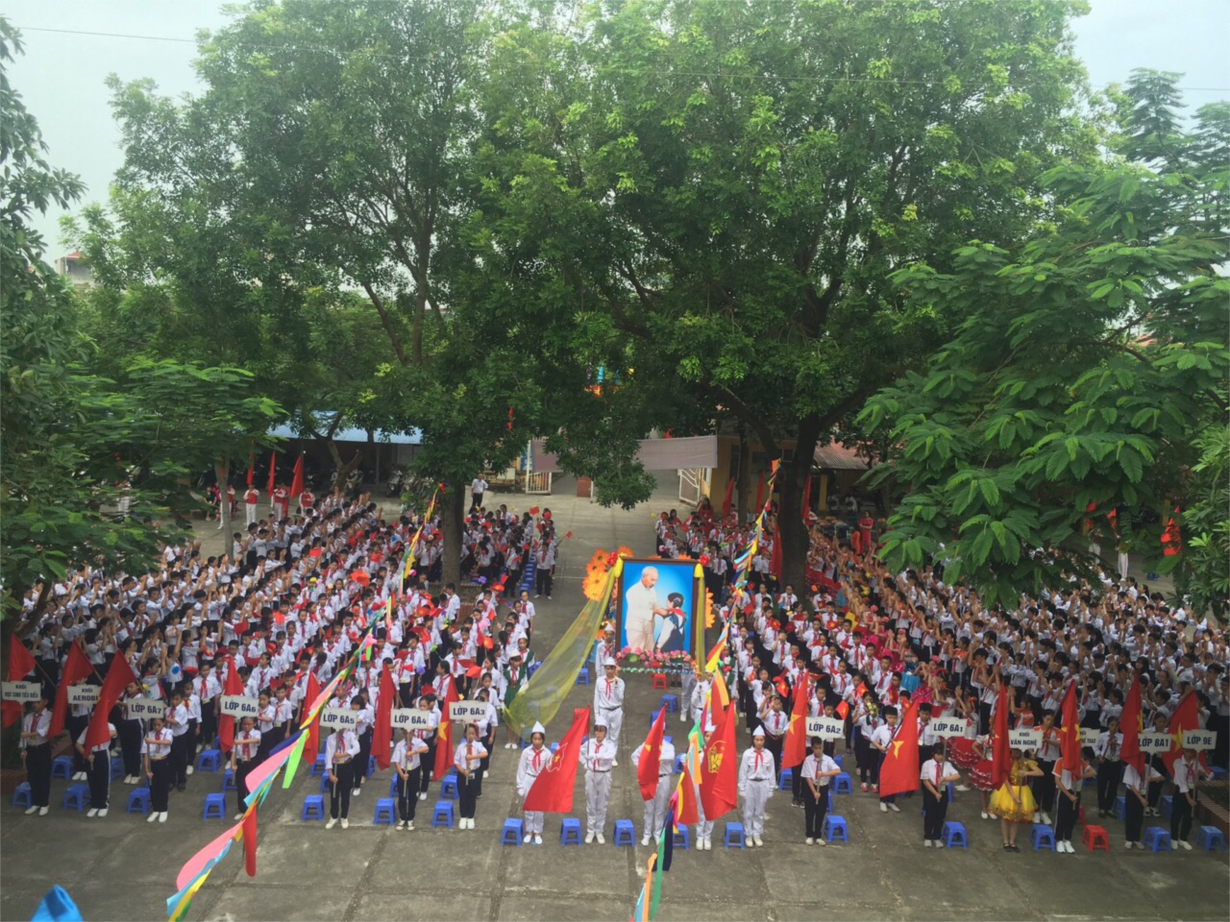 Thay mặt Ban giám hiệu, cô giáo Nguyễn Thị Minh Thảo- Bí thư Chi bộ, hiệu trưởng nhà trường đã tuyên bố khai giảng năm học mới 2019 - 2020 và đánh trống khai trường. tiếng trống âm vang như thúc giục thầy trò nhà trường cuàng nhau thi đua dạy tốt- học tốt.